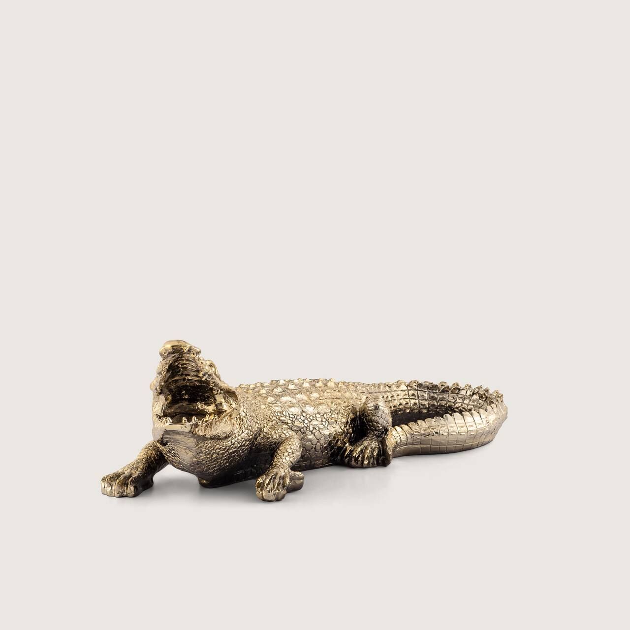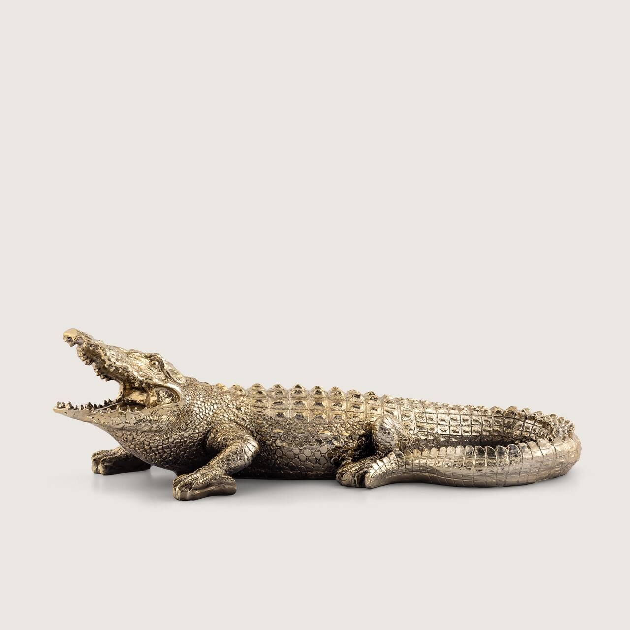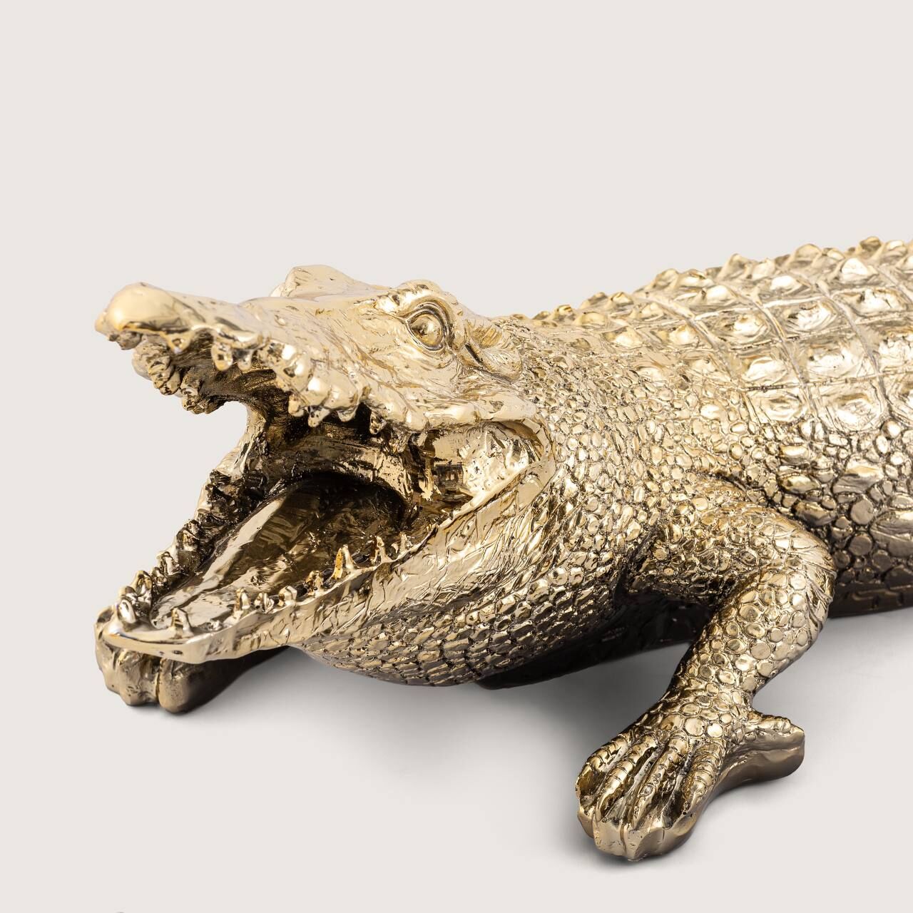 Detaylı kabartma dokusu ve etkileyici duruşuyla öne çıkan bu timsah heykeli, yaşam alanınıza cesur ve karakteristik bir hava katar. Parlak metalik yüzeyi, güçlü duruşu ve ağzı açık formuyla doğanın vahşi estetiğini yansıtırken, aynı zamanda modern, endüstriyel ya da eklektik dekorasyon tarzlarına uyum sağlar.
