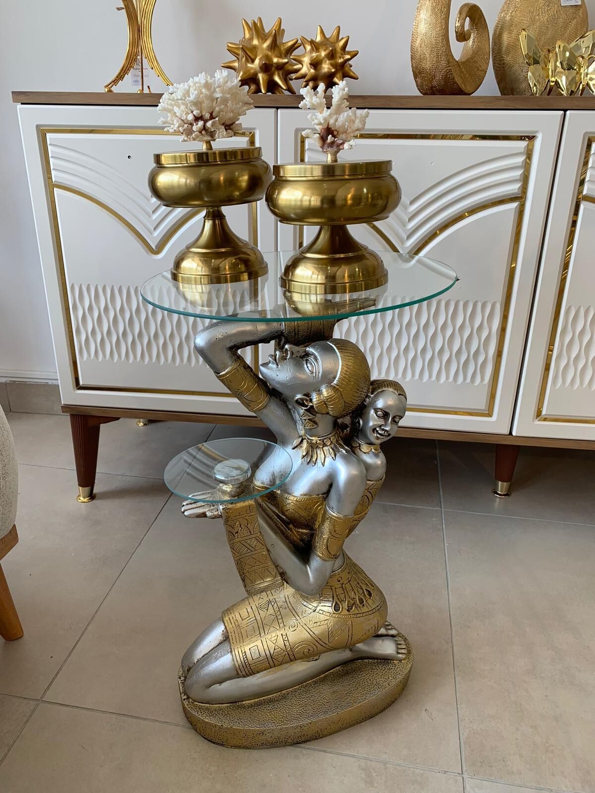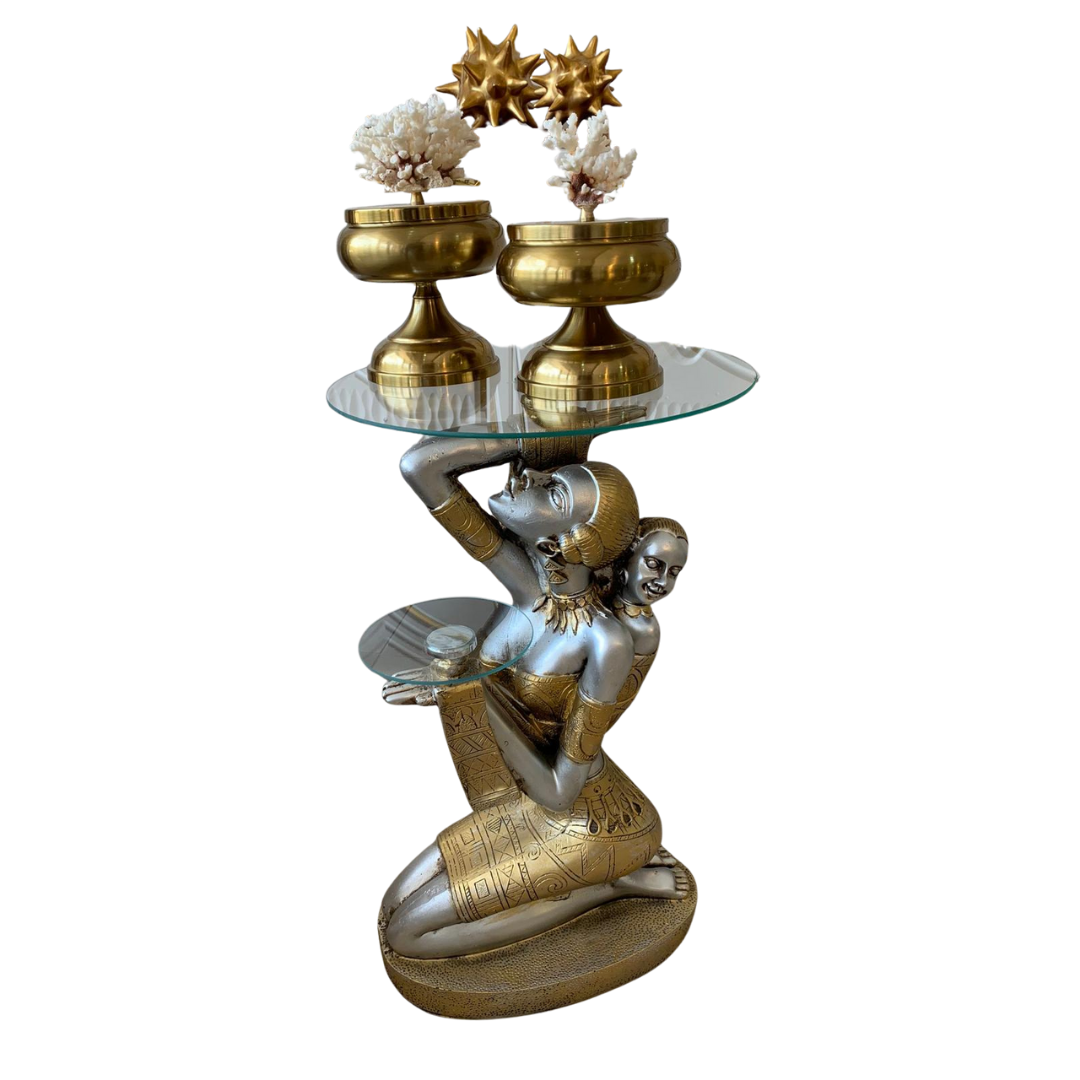 Gümüş Altın Afrika Kadın Figürü Cam Sehpa