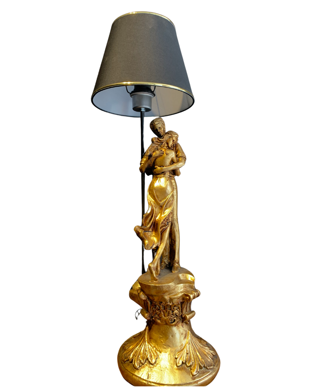 Sanatsal dokunuşlarla tasarlanmış “Aşkın Işığı Figürlü Abajur”, tutkulu bir sarılış anını zamansız bir obje haline getiriyor. Altın rengiyle parlayan bu özel heykel formu, romantizmin zarafetini yaşam alanlarına taşırken; klasik motifli geniş tabanı ve siyah şapkasıyla dikkat çeken estetik bir aydınlatma çözümü sunuyor.